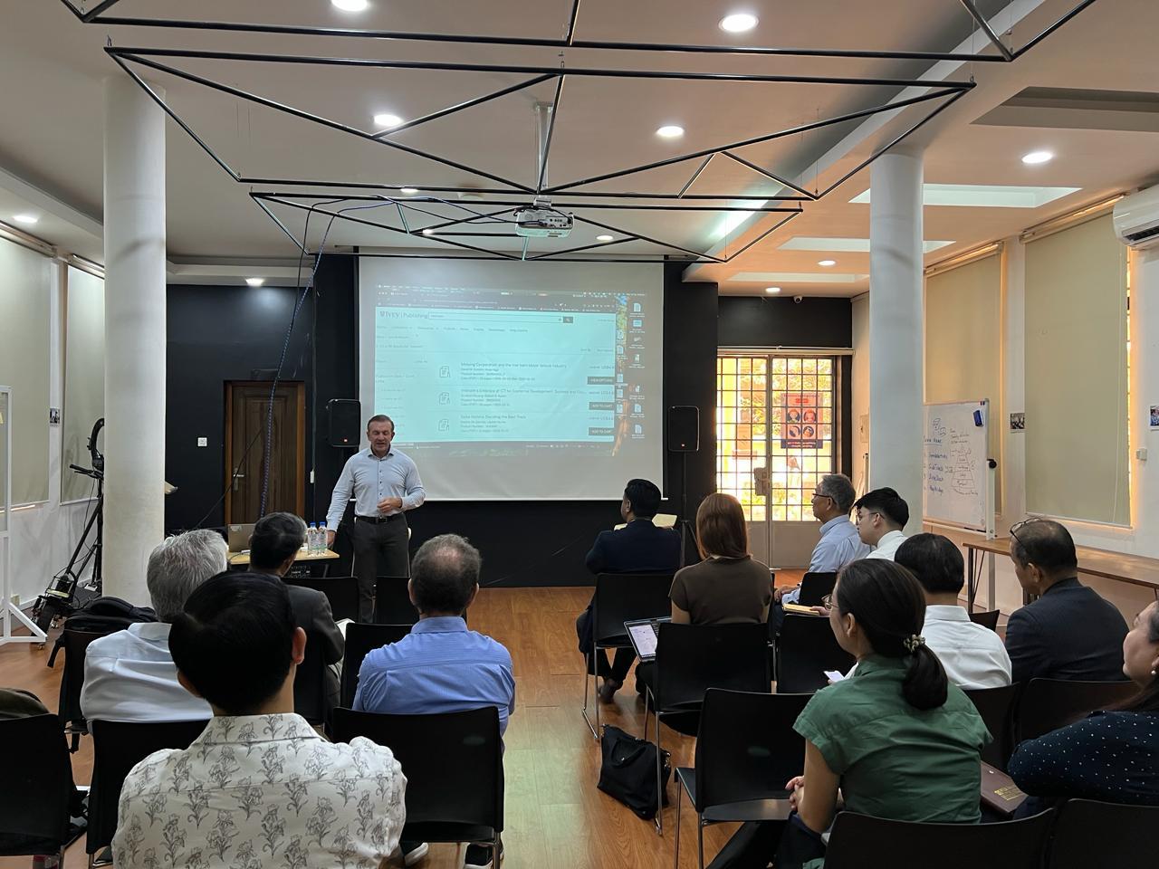 The 39 Country Initiative organized two case teaching workshops in Cambodia in February 2025. The half-day workshops were held at the National University of Management and at the Royal University of Phnom Penh. Professor Andrew Delios, Professor in the Department of Strategy & Policy, NUS Business School, National University of Singapore, introduced over 100 faculty members and students to the 39 Country Initiative and to the case teaching method. RUPP invited professors from ACLEDA University of Business (AUB), the Asia Euro University (AEU) and the National University of Battambang (NUB).